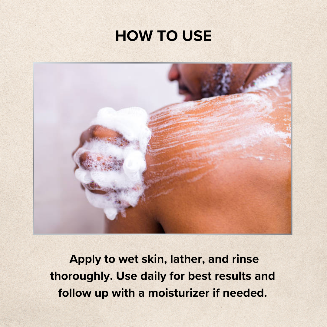 - Apply to wet skin, lather, and rinse thoroughly.