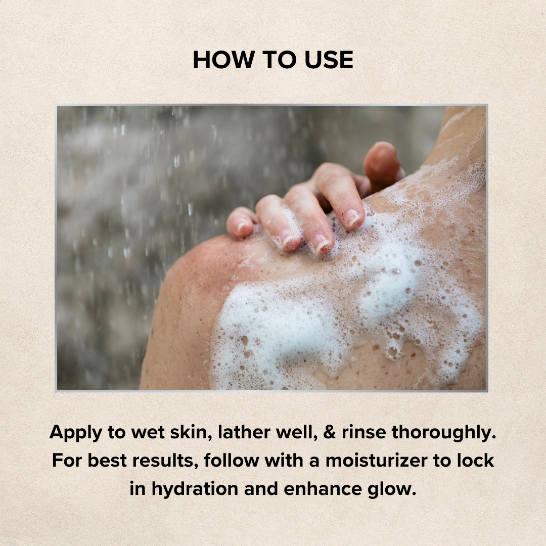 A revitalizing body wash that gently cleanses while brightening, de-tanning, and deeply hydrating the skin for a radiant glow.