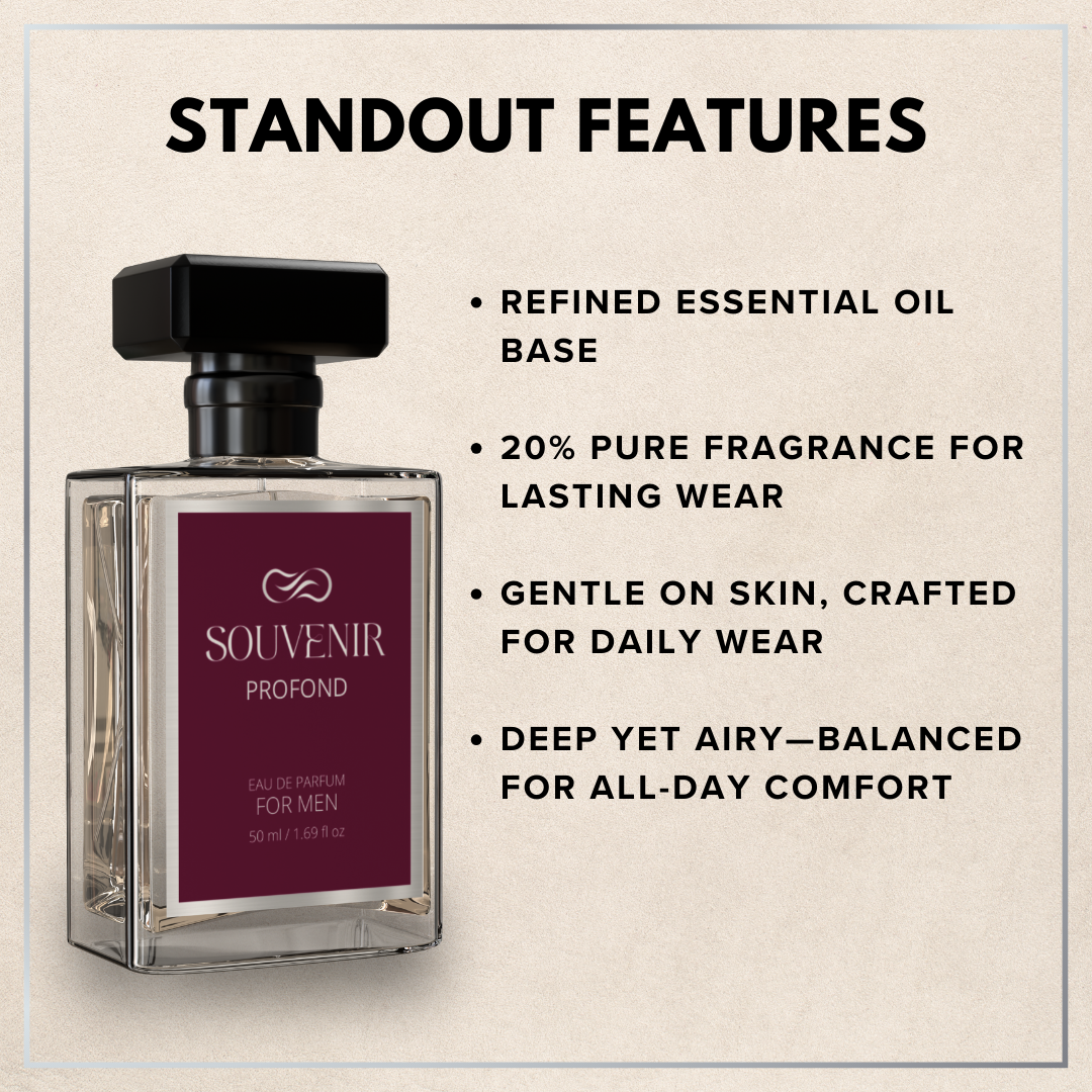 An ode to quiet strength and clarity, Profond carries the stillness of twilight and the depth of thought. Like a slow-burning fire, it lingers with assurance—deep, grounded, and quietly magnetic. For the man who leads with presence, not noise.
