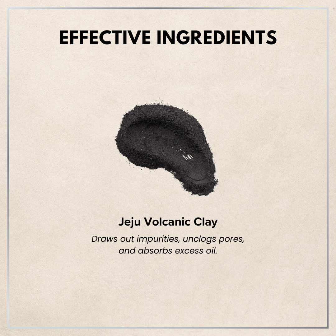 • Jeju Volcanic Clay: Absorbs excess oil, unclogs pores, and detoxifies skin.