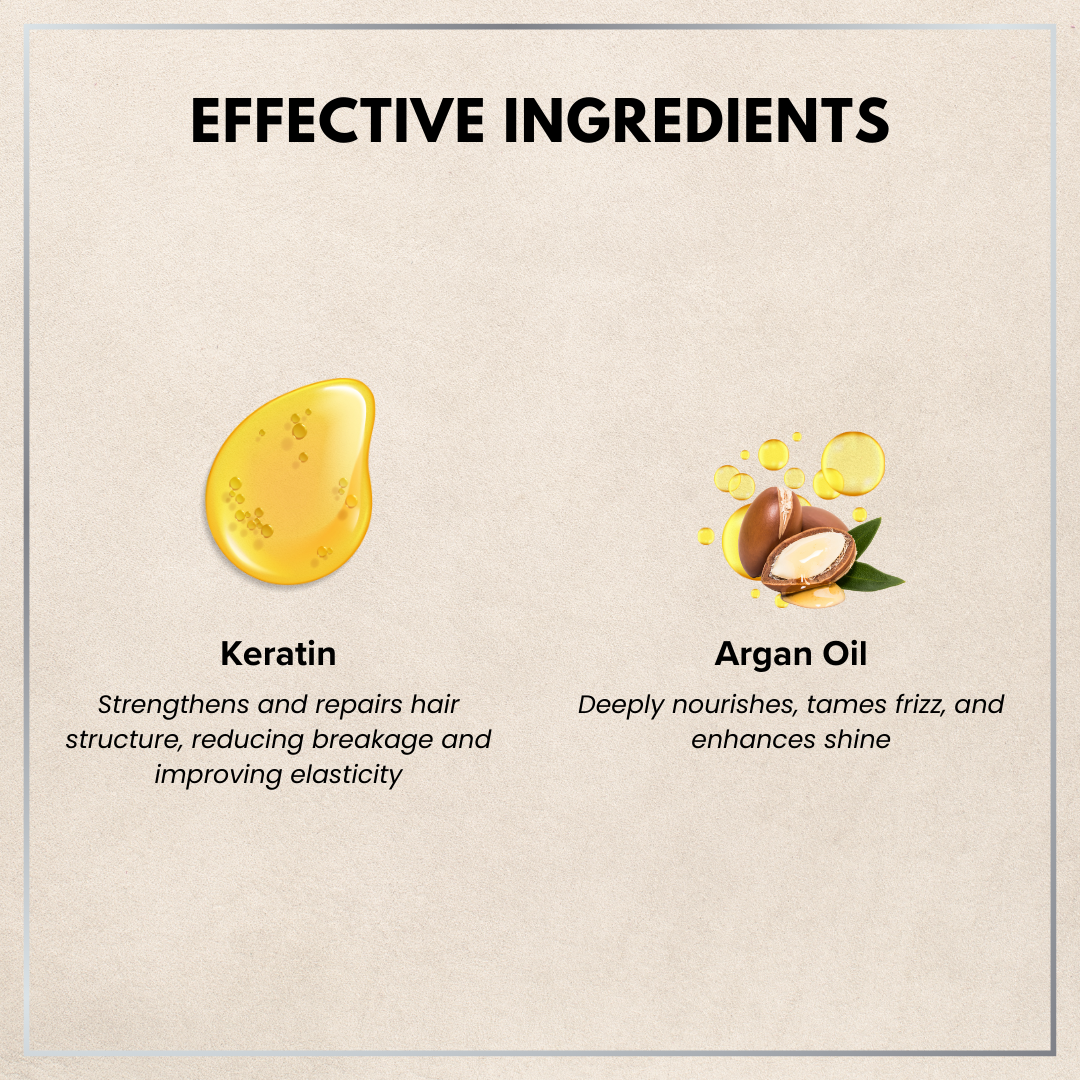 • Argan Oil: Deeply nourishes, tames frizz, and enhances shine.