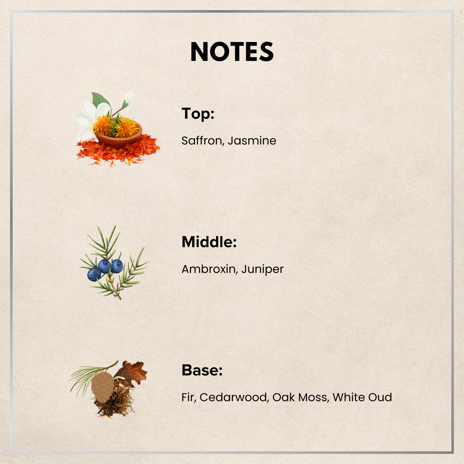 Base: Fir, Cedarwood, Oak Moss, White Oud